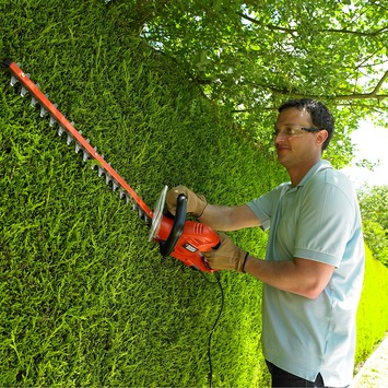 De BLACK+DECKER 600W heggenschaar (GT6060-QS) met 60cm zwaardlengte en 25mm mesopening maken deze heggenschaar zeer geschikt voor het snoeien van grote heggen. Het metalen zaagblad is zeer robuust en scherp en de tanden zijn in een hoek geplaatst waardoor deze zorgen voor optimale snijprestaties. Deze heggenschaar is ontworpen met als centrale thema’s comfort en veiligheid tijdens het gebruik en is alleen met 2 handen te starten en daardoor beveiligd tegen per ongeluk starten van de heggenschaar en de ergonomische handgreep biedt comfort en controle. De gebruiksvriendelijke snoergeleiding zorgt ervoor dat het snoer niet in de weg zit tijdens het werken en de kabelklem zorgt voor een veilige geleiding van het snoer. Het ontwerp is zeer gebalanceerd waardoor er een gelijke gewichtsverdeling is tussen blad en handgreep. Voorzien van een stevige zwaardbeschermer voor het opbergen en veiligheid.