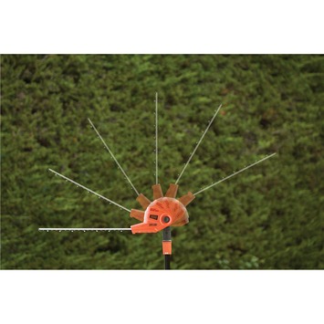 De BLACK+DECKER telescopische heggenschaar PH5551 is een heggenschaar op steel en daardoor zeer geschikt voor hoge heggen. Door de krachtige motor van 550W en een meslengte van 51 centimeter werkt u snel en effectief. De maximale takdikte van de telescopische heggenschaar is 22 mm. De steel is telescopisch verstelbaar tot 235 centimeter waardoor heggen met een hoogte tot ca. 4 meter eenvoudig en veilig bij te houden zijn. De pivoterende kop is in 5 posities verstelbaar.