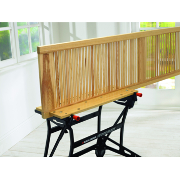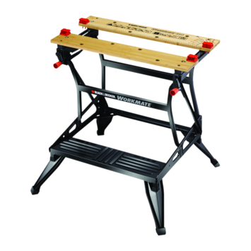 De BLACK+DECKER workmate (wm626-xj) is een in hoogte verstelbare werkbank. Ideaal om te gebruiken als werkbank, zaagbok of als hulpmiddel bij verf- en zaagklussen. De werkbank heeft twee hoogtes, namelijk 775 en 595mm en heeft een spanwijdte van 384mm. Het onderstel is van stevig staal en heeft een draagcapaciteit van 250kg. Door het compacte design is de workmate gemakkelijk op te bergen en te vervoeren. De dubbele klemassen leveren extra klemkracht en gebruiksmogelijkheden. De rubberen steunen ten slotte zorgen voor een antislip-effect.