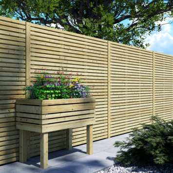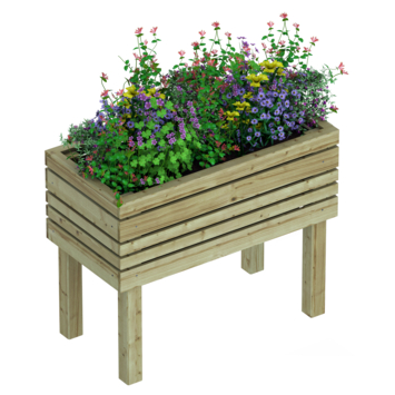 Bloembak David is gemaakt van geïmpregneerd vurenhout en heeft een moderne latten uitstraling. Deze bloembak op poten is ideaal te gebruiken als een moestuin of om bloemen in te plaatsen.