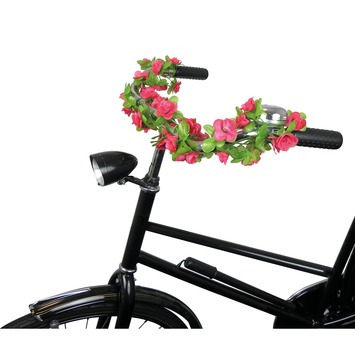 Of u nu graag uw fiets snel terug wilt vinden wanneer u deze gestald heeft in een fietsenstalling, of het leuk vindt uw fiets van een eigen look te voorzien, met deze bloemenstreng valt uw fiets zeker op. De bloemenstreng is voorzien van gekleurde kunstbloemen. U bevestigt de bloemenstreng eenvoudig aan uw stuur of bagagedrager.