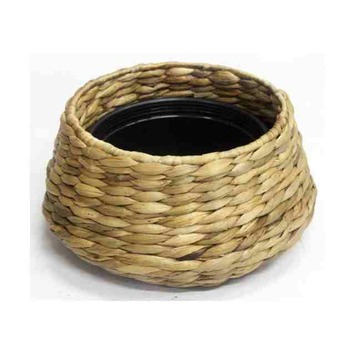 Ronde mand gevlochten met waterhyacint met losse plastic pot. De diameter van de mand is 29 cm en hij is 16 cm hoog. Geschikt voor zowel binnen- als buitengebruik.