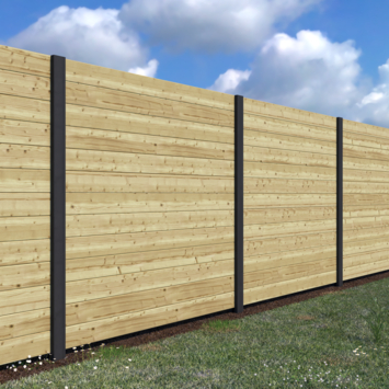 De werkende breedte van de plank is ca. 13,2 cm, dit is de breedte minus het deel van de tand en groef die in elkaar vallen. Met 14 planken kun je een schuttingdeel van ca. 184 cm hoog maken. Meer informatie over deze klus is te vinden op de website onder klusadvies. Grenenhout is een van de meest gebruikte houtsoorten in de tuin. Het geïmpregneerde hout (onder KOMO-keur) heeft een verlengde levensduur, zelfs bij grondcontact. Het hout hoeft niet direct behandeld te worden met beits; na vijf jaar wordt aanbevolen om het opnieuw te behandelen met impregneermiddel of beits.