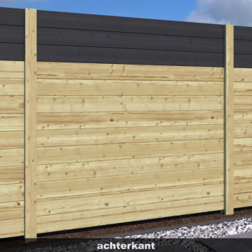 Deze plank heeft een lengte van ongeveer 180 cm, een breedte van circa 13,5 cm en een dikte van zo'n 2,8 cm. Gemaakt van geïmpregneerd grenenhout en afgewerkt met een antracietkleurige spray, biedt het blokhutprofiel een effectieve en esthetisch verantwoorde oplossing voor afscheidingen. De planken passen eenvoudig tussen de sleufpalen dankzij de tand- en groefverbinding. Bij een complete schutting van dit profiel blijft de uitstraling aan beide zijden gelijk. Voor een nette afwerking aan de bovenkant kunt u een afdekprofielplank in dezelfde kleur gebruiken (artikel 159317).