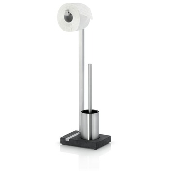 Deze toiletbutler van de badkamerserie Menoto heeft een stijlvolle uitstraling. Met zowel ruimte voor een wc-borstel als een wc-rolhouder heeft deze toiletbutler een hoge mate van gebruiksgemak. De voet is gemaakt van stevig zwart polystone wat samen met de mat afgewerkte roestvrijstalen uitstraling zorgt voor een stijlvol design.