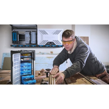 Onderdeel van het BluCave opbergsysteem. Ik was al enige tijd op zoek naar een (professioneel) opbergsysteem dat je aan je behoeftes kunt aanpassen en uitbreiden en wat zowel stationair in de werkplaats als onderweg te gebruiken is. Het BluCave systeem voldoet hieraan en is nog betaalbaar ook voor de gewone klusser, wat mij betreft dus een top product.
