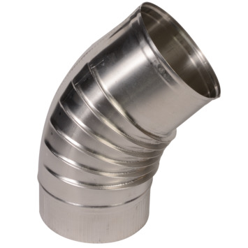 De aluminium bocht met een hoek van 45 graden, wordt gebruikt als segmentbocht in een rookgasafvoer. Het is een buis geschikt voor rookgasafvoer van ketels en geisers. De buis heeft een diameter van 100 millimeter.