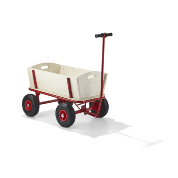 De houten bolderkar is voorzien van een solide stalen onderstel. Daarnaast heeft de bolderkar luchtbanden. Afmeting (lengte x breedte x hoogte): 95x61x59cm.