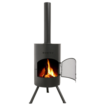De BonTon 40 Zwart is een 145 cm hoge tuinhaard met een doorsnee van 40 cm. De tuinhaard is voorzien van een aslade, houtblokrooster en pook om optimaal te kunnen stoken. De haard is voorzien van 3 poten met een brede basis voor optimale stabiliteit, evenals een handig vonkenscherm. Daarnaast is het logo van BonFeu aan de voorkant uitgesneden, wat mooi zichtbaar is in het vuur. Het product is beschikbaar in het zwart en in roest. De BonTon 40 is de kleinste van de drie van de reeks BonTons.