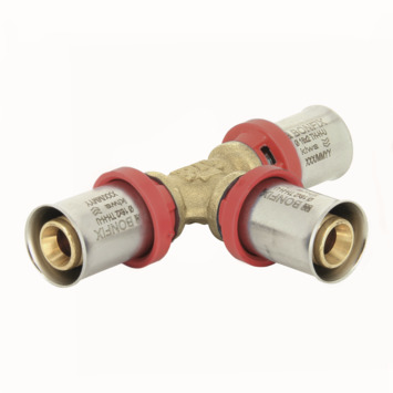 Wil je graag drie leidingen voor drinkwater of cv-installaties aan elkaar koppelen? Koop dan de BONFIX Alu-pers T-stuk 16x2,0x16x2,0x16x2,0mm. De pershuls is gemaakt van RVS, dus minder gevoelig voor corrosie en daarom duurzamer. De diepe ligging van de stevige o-ring in de messing body voorkomt beschadiging van de ring. Dankzij de Leak Before Pressed-functie controleer je snel of de koppeling goed dichtzit, wat lekkages voorkomt. Alu-perskoppelingen koppel je aan flexibele alu-persbuizen die voldoen aan de NEN-norm EN 21003 (meerlaagse leidingsystemen voor warm- en koudwaterinstallaties in gebouwen). Gebruik een speciale perstang met een T-, TH-, of U-bek om de koppeling te sluiten. Dit artikel heeft zowel het KIWA Water Mark als KOMO Keurmerk. Kortom: een goed T-stuk met veel montagegemak.