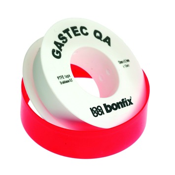 Deze afdichtingstape is perfect voor het afdichten van schroefdraadverbindingen van kunststof, messing, koper, aluminium, gegalvaniseerd staal of ijzer. De Bonfix Teflontape t.b.v. Gas Afdichten 12 mm is temperatuurbestendig, non-sticky en waterdicht en is daarom toepasbaar op onder andere gas, water, stoom, brandstoffen, oplosmiddelen en zuren. De tape is bestendig tegen temperaturen tussen de -100 en +260ºC en heeft een Gastec-QA keurmerk. Zo weet je zeker dat je met een veilig product aan de slag gaat. De Bonfix PTFE afdichtingstape voor gas is onderdeel van ons complete Bonfix assortiment voor klussen rondom sanitair en centrale verwarming. Bonfix maakt klussen nog makkelijker.
