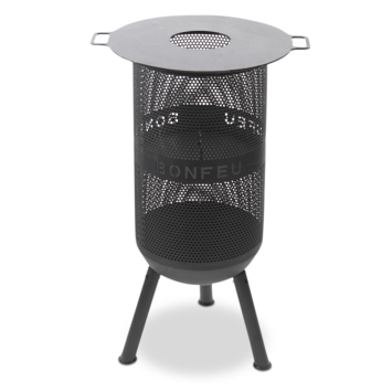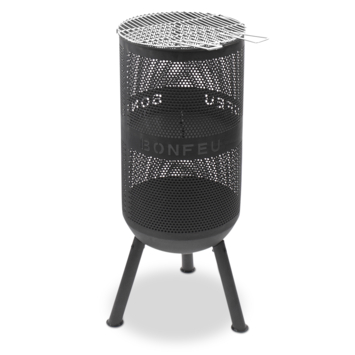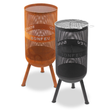 De BonVes 34 Zwart is een 85 cm hoge vuurkorf met een doorsnee van 34 cm. De unieke vuurkorf is ook te gebruiken als barbecue, doordat er bij het product een BBQ-grill en een pook wordt bijgeleverd. De BonVes 34 is verder uit te breiden met een mooie bakplaat/plancha. De maat van de vuurkorf is ideaal voor het koken, aangezien je op twee verschillende hoogtes kunt koken door de bijgeleverde middenplaat. De haard is voorzien van 3 verstelbare poten met een brede basis voor optimale stabiliteit. Daarnaast is het logo van BonFeu aan de voorkant uitgesneden, wat mooi zichtbaar is in het vuur. Het product is beschikbaar in het zwart en in roest. De BonVes 34 is de kleinere versie van de BonVes 45.