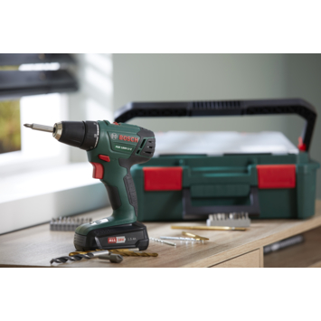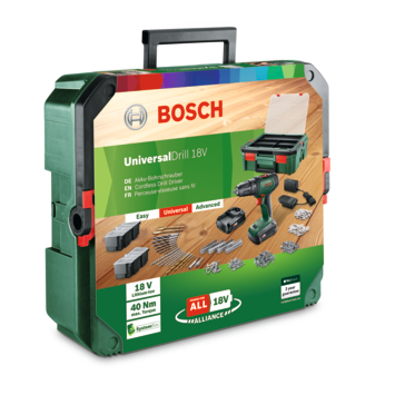 De Bosch accuschroefboormachine UniversalDrill 18 + SystemBox is de perfecte totaaloplossing voor doe-het-zelvers die de voorkeur geven aan een zeer praktisch systeem voor het schroeven en boren.