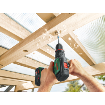De Bosch AdvancedDrill 18V-80 verenigt krachtig boren en schroeven met optimale flexibiliteit. Met een maximaal koppel van een sterke 78 Nm en variabel toerental pakt deze elke klus probleemloos aan - van geleidegaten tot het indraaien van schroeven, bouten of bevestigingsmiddelen in hout, metaal of kunststof. Deze robuuste machine is gebouwd om lang mee te gaan dankzij een borstelloze motor en afneembare metalen boorhouder. In de boorhouder van 13 mm kunnen diverse boren en schroefbits, gatenzagen en accessoires worden bevestigd. Het vastmaken van de magnetische kap is een praktische functie voor elke schroeftoepassing, zodat schroeven niet met de hand op hun plek hoeven te worden gehouden. Deze schroefboormachine met hoog prestatievermogen heeft een QuickSnap-interface, zodat de boorhouder kan worden gewisseld en extra verkrijgbare opzetstukken om krappe plekken te bereiken kunnen worden gebruikt. Een extra handgreep verbetert de controle en stabiliteit tijdens bediening, wat extra comfort en minder vermoeidheid betekent. De geïntegreerde Bosch Syneon Technology zorgt voor optimaal vermogen en maximale looptijd. Het gereedschap maakt deel uit van het 18V POWER FOR ALL-systeem. Eén accu kan worden gebruikt voor alle 18V POWER FOR ALL-gereedschappen. Krachtig boren en schroeven met een maximaal koppel van 78 Nm en variabel toerental schroefboormachine dankzij borstelloze motor en verwisselbare metalen boorhouder van 13 mm QuickSnap-interface voor de magnetische kap of extra verkrijgbare opzetstukken om krappe plekken te bereiken Veilig en nauwkeurig werken met meer controle dankzij extra handgreep Ideaal voor boren en schroeven in hout, metaal en kunststof Syneon Technology voor optimale kracht en maximale looptijd Compatibel met Bosch 18V POWER FOR ALL-accu