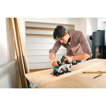 De accucirkelzaag PKS 18 LI is dankzij de compacte constructie en het ergonomische ontwerp eenvoudig te hanteren. Met behulp van de beugelgreep en de voorste tweede handgreep kan de handcirkelzaag zeer exact en veilig worden geleid. Doe-het-zelvers hebben daardoor steeds de volledige controle over de machine en kunnen zich helemaal concentreren op het zagen en een zuivere geleiding over de zaaglijn. Daarbij worden ze geholpen door het zaaglijnvizier CutControl, een transparant, naar voren uitklapbaar verlengstuk met zaaglijnmarkering en een voetplaatmarkering voor hoeken van 90 en 45 graden. Bovendien kunnen de zaagdiepte en verstekhoek tot 45 graden snel en comfortabel worden ingesteld. Voor nog meer kracht zorgt de geïntegreerde Bosch Syneon Chip die per acculading voor meer looptijd zorgt.