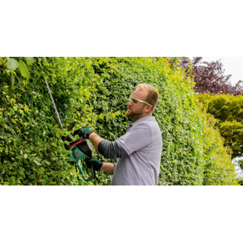 De EasyHedgeCut 18V-44-11 is perfect voor het onderhoud en snoeien van kleine en middelgrote heggen. Hij heeft een uitzonderlijk laag gewicht van 2,3 kg met een ergonomisch ontwerp voor comfortabel hanteren in diverse posities tijdens het werken, voor minder belasting van het bovenlichaam bij langer werken met het gereedschap. De accu van 18 V levert een optimaal vermogen in combinatie met het Bosch 'Anti-Blocking'-systeem om te zorgen voor uitstekende omstandigheden voor zuiver, krachtig en continu snoeien zonder frustrerende tegenslagen zoals afslaan van de motor. Snoerloze mobiliteit maakt bewegingsvrijheid in de tuin mogelijk zonder de beperking of het risico van doorsnijden van netsnoeren. Het gereedschap maakt deel uit van de POWER FOR ALL ALLIANCE. Eén accu kan een groot aantal machines/apparaten van verschillende merken laten werken.
