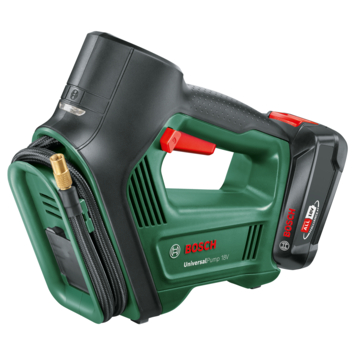 De Bosch 18V accupomp UniversalPump is een krachtige accupomp voor het oppompen van diverse soorten banden, ballen en kleinere luchtbedden tot 10,3 bar.