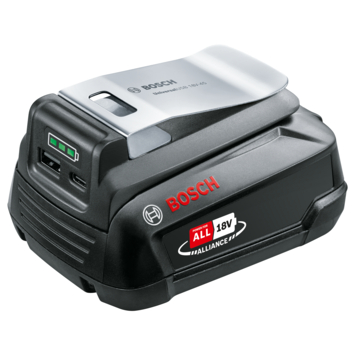 De USB adapter / Power bank Universal USB 18V-45 van Bosch. Deze Power for All accu is voorzien van een USB connect voor het opladen van diverse devices zoals een bijvoorbeeld een mobiele telefoon.