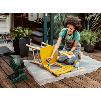 De Bosch Accuventilator UniversalFan 18V-X is een efficiënte accuventilator met 5 proppellerbladen en heeft een instelbare blaassnelheid. De accuventilator is gemakkelijk overal te gebruiken kan tot 30º graden naar voren kantelen en tot 150º graden naar achteren. De accuventilator is geproduceerd in de EU en bestaat voor 90% uit gerecyceld materiaal.