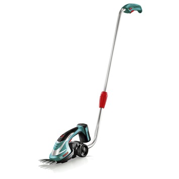 Een handige grasschaar die werkt op een accu. De Bosch accu grasschaar AGS 10,8 Li heeft een flexibele telescoopsteel die je tussen de 80 cm en 115 cm kunt verstellen. Dit maakt het mogelijk om de zijkanten van je gazon in een comfortabele lichaamshouding bij te werken. De softgrip en ergonomische gevormde greep zorgen voor een prettige ligging in de hand. De grasschaar heeft een geïntegreerde 10,8V Li-Ion accu die je binnen 3,5 uur volledig oplaadt en een looptijd van 85 minuten heeft. Hierdoor is deze grasschaar altijd klaar voor gebruik, dit zie je ook op het geïntegreerde laadtoestandindicatie. Dit Zwitsers precisiegeslepen kwaliteitsmes heeft een mesbreedte van 10cm en is makkelijk verwisselbaar dankzij het Bosch SDS-systeem. Kortom: een krachtige grasschaar die handig voor ieder gazon.