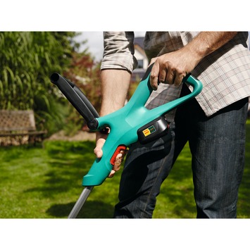 De Bosch accu grastrimmer ART 23-18 Li is de perfecte draadloze trimmer voor tuiniers en huiseigenaars die hun buitenruimtes er gezond en verzorgd willen laten uitzien met minimale inspanningen. De ART 23-18 Li trimmer van Bosch is een geavanceerd tuingereedschap dat een krachtig maaivermogen biedt zonder in te boeten aan gebruiksvriendelijkheid en comfort. Deze trimmer wordt geleverd met een heleboel functies zoals snelheidsregeling, een hoogwaardig mes dat in alle omstandigheden snijdt en regelbare instellingen waarmee u het toestel kunt aanpassen aan uw specifieke behoeften. Eén accu voor alle doe-het-zelf- en tuingereedschappen in het 18V Power for ALL Lithium-Ion accusysteem.