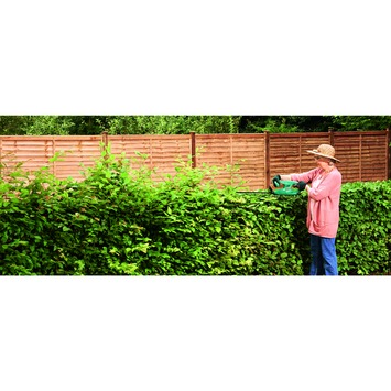 De Bosch accuheggenschaar AHS45-15 LI is compact en laag in gewicht wat hem ideaal maakt voor het onderhouden van kleine heggen. De heggenschaar beschikt over diamantgeslepen messen van 450mm lang met 15mm mesafstand. De optimale balans en ergonomie zorgen voor extra comfort en controle. Het Anti-Blocking systeem maakt permanent snoeien mogelijk. Dankzij de Syneon-chip beschikt u over intelligent geregelde energie voor elke klus. De accu is altijd gereed voor gebruik dankzij de Lithium-Ion-technologie.