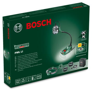 De Bosch PML 18 is een heldere en krachtige lamp dankzij drie hoogwaardige LED’s De lampkop heeft een flexibele nek en is zo in iedere stand te buigen. De Bosch PML 18 wordt zonder accu geleverd en is onderdeel van het Bosch accuplatform for All-systeem. Heeft u al een 14.4 of 18 volt Bosch accu machine in huis dan kunt u de accu gebruiken op deze handige lamp.