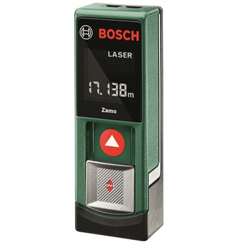 De Zamo afstandsmeter van Bosch is een handig instrument om snel de oppervlakte van bijvoorbeeld een muur of vloer te kunnen berekenen. Aan de hand daarvan weet u precies hoeveel verf of laminaat u moet bestellen. De laser heeft een bereik van 20 meter en doet er maximaal 4 seconden over om de afstand tot op 3mm nauwkeurig te berekenen. Met slechts één druk op de knop geeft de Bosch Zamo de afstand weer op het display. Dit maakt deze afstandsmeter van Bosch zeer prettig om mee te werken.