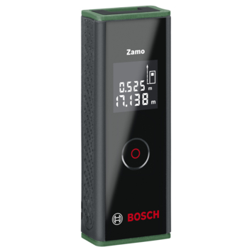 De Bosch Zamo afstandsmeter, met slechts één druk op de knop is het meten van afstanden voor iedereen gegarandeerd eenvoudig. Lengtes en afstanden tot 20 m kunnen snel en precies worden bepaald. De door Bosch ontwikkelde technologie zorgt voor exacte meetresultaten met een precisie van ±3 mm dankzij lasertechnologie. Met zijn praktische afmetingen en het geringe gewicht van slechts 80 g past het praktische toestel in elke broekzak.