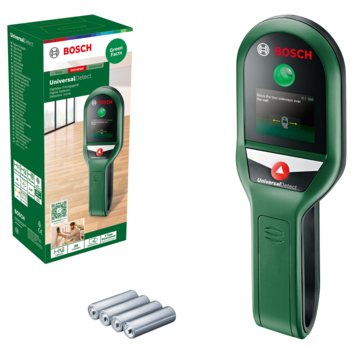 De Bosch detector UniversalDetect combineert een maximale gebruikstevredenheid met de beste prestaties. De detector is geschikt voor hout, metaal, ijzer, koper en spanningvoerende leidingen. Deze detector wordt geleverd met 4xAAA batterijen.