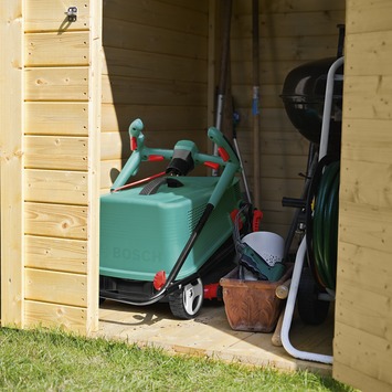 De Bosch grasmaaier ARM 34 is een veelzijdige en moderne grasmaaier. De maaier heeft een vermogen van 1300 Watt en een maaibreedte van 34 cm. Dankzij de bijzonder sterke power-drive motor, wordt je gazon razendsnel en nauwkeurig gemaaid. De grasmaaier heeft scherpe messen die, in tegenstelling tot andere grasmaaiers, ook buiten de wielen maaien. De fijne handgrepen zijn verstelbaar en kunnen op jouw lengte worden ingesteld. Ook is de maaihoogte in 5 verschillende standen instelbaar. De grasmaaier heeft een opvangbak van 40 liter, zo kan je zonder onderbrekingen je gazon maaien en hoef je niet te harken. De grasmaaier heeft een licht gewicht en kan met de verstalbare grepen compact worden opgeborgen. Kortom, de Bosch grasmaaier ARM 34 zorgt altijd voor een verzorgd en mooi gazon.