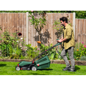 De Bosch grasmaaier ARM 3650 1400 Watt is een krachtige machine die jouw tuin weer helemaal in orde maakt. De grasmaaier heeft een krachtige power-drive motor die zorgt dat je in een handomdraai je gazon perfect gemaaid hebt. De motor heeft een voltage van 1400 Watt en een maaibreedte van 37 cm. De stalen messen snijden gras en onkruid met gemak weg. De graskammen van de maaier zorgen ervoor dat je eenvoudig langs de randen kan maaien. Met de handige opvangbak van 40 liter wordt je gemaaide gras opgevangen. Je hoeft na afloop van je klus niet meer te harken en door de ruime inhoud heb je minder onderbrekingen. De Bosch grasmaaier heeft verder fijne handgrepen die het werken met de maaier erg comfortabel maken. De maaihoogte is dankzij de centrale maihoogteverstelling eenvoudig in te stellen. Het lichte model van de grasmaaier zorgt dat je de machine gemakkelijk kan verplaatsen en met de inklapbare duwboom kan je de grasmaaier zonder enige moeite opbergen. Kortom, de Bosch grasmaaier ARM 3650 1400 Watt zorgt altijd voor een verzorgd en mooi gazon.