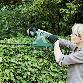 De Bosch elektrische heggenschaar AHS 45-16 is ideaal voor het snoeien van kleine en middelgrote heggen. Deze heggeschaar weegt slechts 2,6 kilo. Hierdoor kunt u lang werken zonder last van uw bovenlichaam te krijgen. Ondanks het lichte gewicht levert de Bosch 'High Power Motor' van 420 watt een krachtige snoeiprestatie. De heggenschaar heeft een meslengte van 45 cm met een maximale snijcapaciteit van 16 mm.