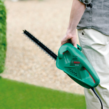 Een lichte, elektrische heggenschaar die makkelijk in het gebruik is. De Bosch elektrische heggenschaar AHS 60-16 heeft een gewicht van 2,8kg en is daarom makkelijk te hanteren. Dankzij de hogesnelheidsmotor met een vermogen van 450 watt, de meslengte van 60cm en mesafstand van 16mm, levert deze heggenschaar goede prestaties. Deze kenmerken maken dit apparaat geschikt voor het snoeien van kleine heggen. Het ergonomische ontwerp van de handgrepen zorgt ervoor dat je deze machine moeiteloos hanteert. Kortom: de ideale heggenschaar waarmee je jouw armen en rug niet belast.