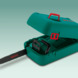 Een héél slim koffer: Voor langdurige opslag kun je het mes er af halen en alles in het koffer opbergen en als je het tijdelijk met mes op het motorblok wil opbergen is er een handige uitsparing in het koffer zodat het mes er tijdelijk uitsteekt, maar dat kun je weer veilig met de hoes afschermen. Dus over robuustheid en gebruiksvriendelijkheid is weer vertrouwd goed nagedacht door Bosch.