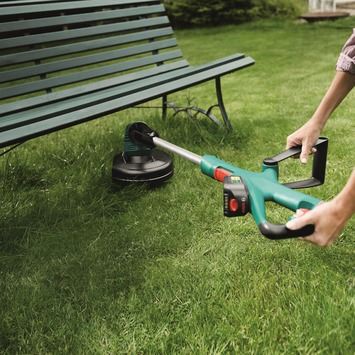 De Bosch ART 23-18 LI is een veelzijdige 18 Volt 2,5 Ah accugrastrimmer. De lengte van de steel is in te stellen tussen de 80 en 115 centimeter. Daarnaast kan het handvat versteld worden en de kop in een hoek van 90 graden worden gezet voor een comfortabel gebruik. Dankzij de nylon mesjes kunt u ononderbroken trimmen. Voor deze grastrimmer zijn losse reserve mesjes te bestellen, onder artikelnummer 506786
