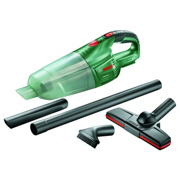 De Bosch handstofzuiger PAS18 LI geeft stof en vuil geen kans. Met de uitgebreide accessoires kunt u de handzuiger heel eenvoudig aan uw behoefte aanpassen. Zo kan hij bijvoorbeeld niet enkel als typische handzuiger voor tafels, werkbanken of kussens gebruikt worden. Met de praktische verlengbuis en de vloerzuigmond kunt u de stofzuiger ook als heel gewone vloerstofzuiger gebruiken. De Bosch PAS 18 LI biedt onbeperkte mobiliteit en helpt u op elke plek die u snel en moeiteloos schoon wilt krijgen. De handstofzuiger werkt op een accu, de accu wordt niet meegeleverd. De handstofzuiger valt namelijk onder het Bosch accuplatform Power for All-systeem. U kunt dus een accu gebruiken van een andere Bosch machine of een losse accu aanschaffen.