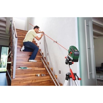 De PCL 20 Lijnlaser+TT 150 van Bosch is eenvoudig en precies. Binnen enkele seconden nivelleert deze kruislijnlaser automatisch, waardoor de geprojecteerde lijnen altijd waterpas zullen zijn. De laser heeft een werkbereik van 10 meter en kan verschillende soorten lijnen projecteren, zoals kruislijnen, individuele horizontale en verticale lijnen, een lijn in helling en een loodlijn voor de overdracht van een punt van de vloer op het plafond. De laser heeft een nauwkeurigheidsgraad van 0,05 millimeter per meter, waardoor er bij elke klus zeer nauwkeurig gewerkt zal worden. Kortom: geen klus is te moeilijk voor de PCL 20 lijnlaser. De kruislijnlaser wordt geleverd met loodlijnfunctie, batterijen, wandhouder en opbergetui.