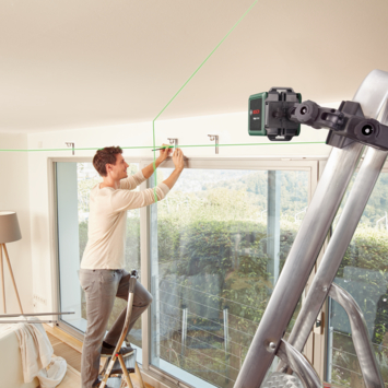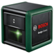 De Bosch Quigo Green is de praktische en zelfnivellerende kruislijnlaser waarmee doe-het-zelvers hun creatieve ideeën realiseren. Met opengeschoven afdekklep is het toestel direct gereed voor gebruik en projecteert een dankzij zelfnivellering 100% recht laserkruis op de muur. De geïntegreerde hellingsfunctie maakt ook het projecteren van schuine lijnen mogelijk. Hiermee kunnen boorpunten of spijkers heel snel en eenvoudig uitgelijnd worden.