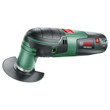 De Bosch multitool PMF 2000 is uiterst flexibel inzetbaar. De allrounder is geschikt voor detail-, reparatie- en aanpassingswerkzaamheden zoals zagen, schuren, doorslijpen en krabben. Comfortabel en moeiteloos wisselen van alle accessoires dankzij magnetische gereedschapopname met universele schroef. De Bosch Electronic met traploze instelling van het aantal zaagbewegingen en een oscillatie van 15.000 tot 20.000 bewegingen per minuut in een hoek van 2,8 graden zorgt ervoor dat op het materiaal afgestemd kan worden gewerkt. Dankzij de geoptimaliseerde constructie en het ergonomische ontwerp met een kleine greepomtrek en softgrip produceert de machine zeer weinig trillingen en kan comfortabel worden gehanteerd.