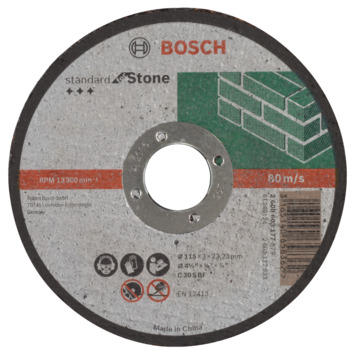 Doorslijpschijf recht Standard for Stone C 30 S BF, 115 mm, 22,23 mm, 3,0 mm. Doorslijpschijven voor steen met goede prestaties tegen een aantrekkelijke prijs. Passend bij niet-stationaire haakse slijpmachines. Maximale omtreksnelheid: 80 m/s (afhankelijk van toerental en schijfdiameter).