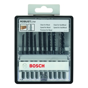 Bosch Pro decoupeerzaagbladenset Wood Expert T-schacht 10-delig. Past op decoupeerzagen met een enkelnokkenschachtsysteem. De Bosch Pro decoupeerzaagbladenset Wood Expert T-schacht 10-delig is de universele keuze voor speciale houttoepassingen. De zaagbladen zijn ideaal voor rechte en gebogen zaagsneden en bieden nauwkeurige, snelle en gladde resultaten in hardhout en houtbewerkingsmaterialen.
