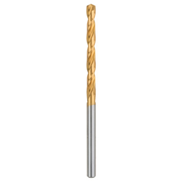 Metaalboren HSS-TiN, DIN 338 4 x 43 x 75 mm. Spiraalboren van HSS-staal conform DIN 338. Rechtssnijdende spiraalboor, type N, boorpunt 135°, viervlak volgens DIN 1412 C, diametertolerantie h 8. Uit massief stuk geslepen spiraalboor met bijzondere oppervlakteveredeling door titaan-nitride-laag.