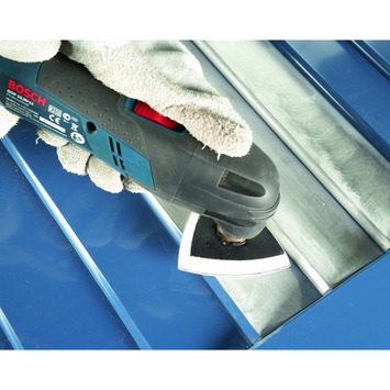 Polijstvilt hard, 93 mm. Geschikt voor het voorpolijsten van sterk vervuilde of bekraste oppervlakken – met gebruik van politoer of schuurpasta op gelijke vlakken. Passend bij deltaschuurmachines van Bosch, Casals, Makita, Metabo.