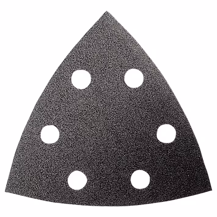 5-delige schuurbladenset 93 mm, 80. Geschikt voor het grof tot glansschuren van extreem harde materialen zoals steen, glas, plexiglas, autolak of moffellak. Passend bij deltaschuurmachines van Bosch, Casals, Makita, Metabo.