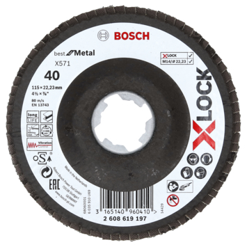 De X-LOCK X571 Best for Metal lamellenschuurschijf heeft een uitstekende levensduur bij metaaltoepassingen. De hoogwaardige zirkonium-aluminiumoxide / halfbrosse aluminiumoxide korrelbekleding is stevig en slijtvast bij uitvoerige metaalbewerking. De steunplaat van de schijf is leverbaar in een schuine en rechte uitvoering, gemaakt van glasvezel.