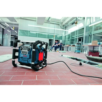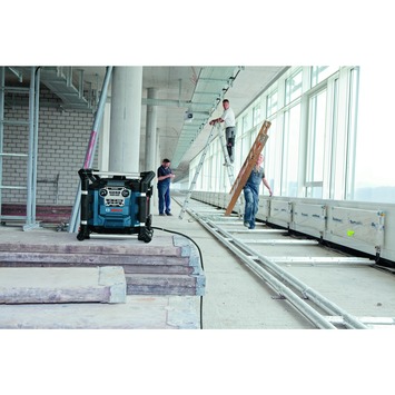 Geniet tijdens het klussen van uw favoriete muziekzenders met de Bosch Professional radio GML 20. Bouwplaatsradio's van Bosch zorgen voor de juiste sound op de bouwplaats. De radio’s bieden de perfecte weergave van muziek uit de radio en alle mp3-formaten. De bouwradio is makkelijk te bedienen en is vervaardigd uit robuuste materialen. Dat betekent dat de bouwradio tegen een stootje kan. De radio is, door zijn krachtige geluid, ideaal voor gebruik in lawaaiige omgevingen. Luister daarom tijdens het klussen naar muziek met de Bosch Professional radio GML 20.