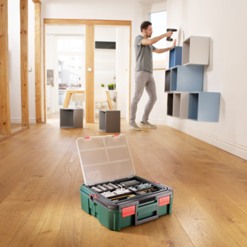 Sinds enkele weken heb ik meerdere systemboxen, met bijhorende opbergruimte voor de deksels. Zeer handig om al het materiaal (machines) in op te bergen, alsook om alle toebehoren (boren, bitsen, schuurpapier, zaagjes...) bij de machines te houden. Bijkomend voordeel is dat de boxen eenvoudig aan elkaar gekoppeld kunnen worden, waardoor alles makkelijk in 1 keer lopen meegenomen kan worden.