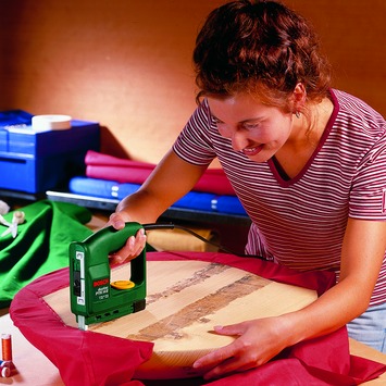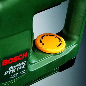 De Bosch elektrische tacker duotack PTK 14 E is een handige nietmachine waarmee gemakkelijk en snel geklust kan worden. De Tacker bevat een stelwiel voor de instelling van de slagkracht voor op het materiaal afgestemde werkzaamheden. Er kan tevens snel gewisseld worden van bevestigingsmateriaal zonder magazijn- of frontplaatwissel. Door het Bosch-duotac-automaat kunnen er 2 nieten tegelijk worden verwerkt. Hierdoor wordt het scheuren van bijvoorbeeld fijne stoffen of folie voorkomen. De tacker verwerkt tevens nieten en nagels tot wel 14 mm lengte en heeft een gering gewicht van 1,1 kg. Dit maakt de tacker ideaal in gebruik.