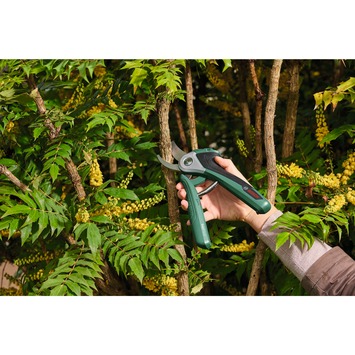 Deze schaar is heel handig. Net dat beetje extra kracht dat je soms nodig hebt. Nu is snoeien helemaal een plezierig werkje omdat je minder snel moe wordt. De schaar is niet echt geschikt voor hele kleine handjes.